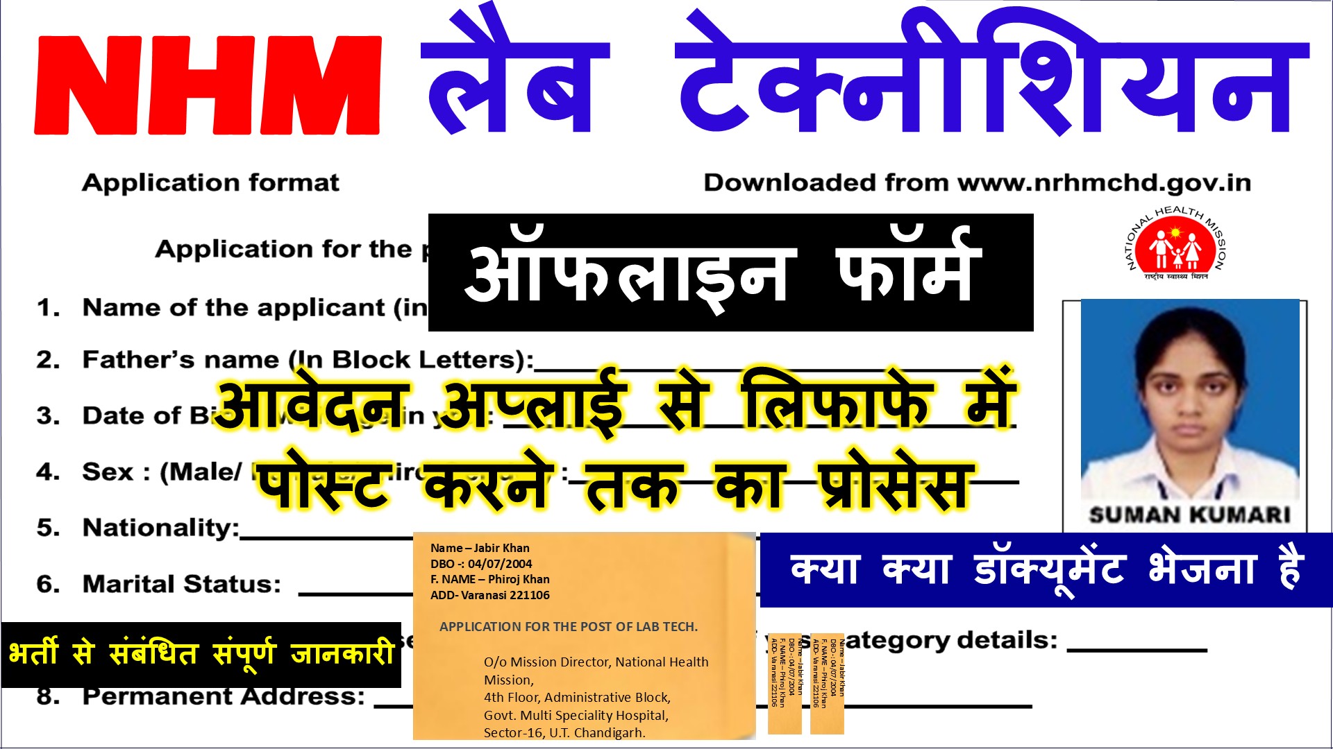 NHM Chandigarh Offline Application Form for 16 Lab Technician Posts